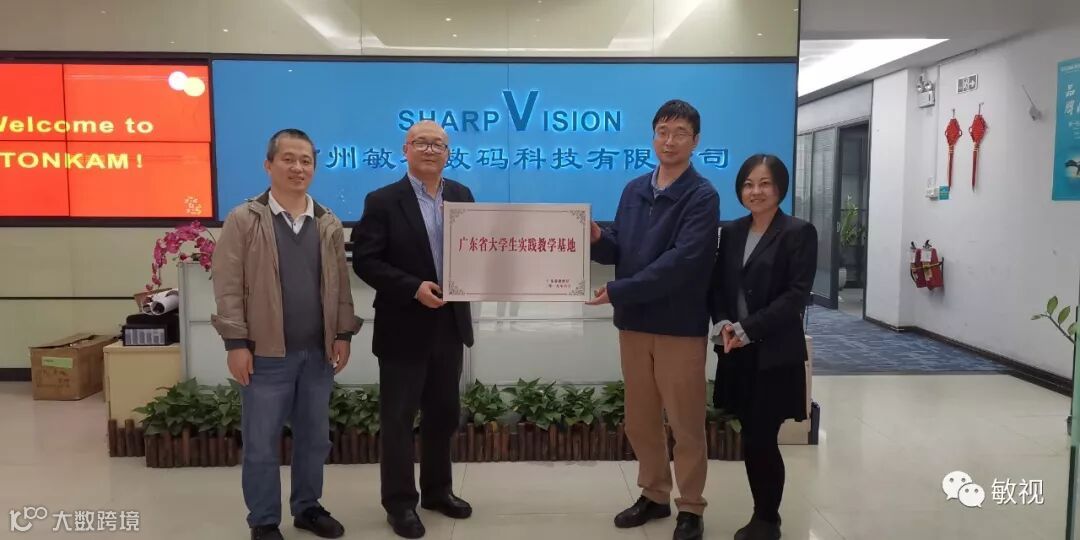 12月23日下午,广东工业大学自动化学院副院长蔡述庭教授及王永华博士莅临敏视,为敏视授予“广东省大学生实践教学基地”牌匾。