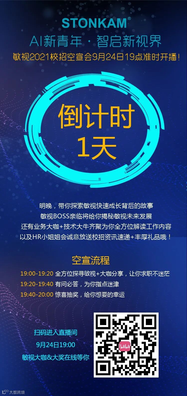 倒计时1天!敏视2021校招空宣会9月24日19点准时开播!