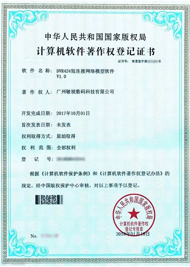近日,STONKAM®(广州敏视数码科技有限公司)自行研发的DVR424短连接网络模型软件V1.0成功获得了由中华人民共和国国家版权局颁发的计算机软件著作权登记证书,STONKAM®的自主研发能力再次获得权威印证。至此,STONKAM®拥有的软件著作权数量达34项。