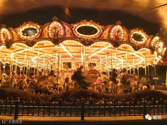 灰姑娘旋转木马 —充满了梦幻,让你忍不住化身为童话中的公主,骑上木马,沿着逆时针方向,开始你的奇幻旅程,如果抬头的话,你还能看到顶篷八幅《灰姑娘》经典场景手绘图!