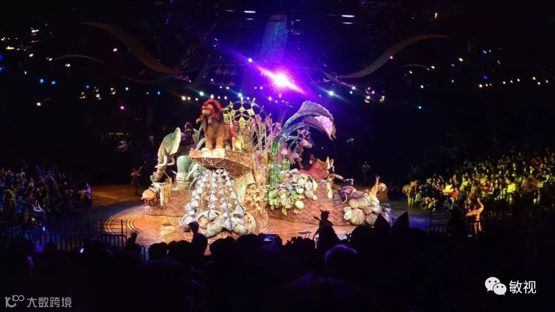 而在狮子王庆典剧场,狮子王辛巴、丁满和彭彭跳出大银幕给大家带来一部百老汇式的大型歌舞剧,场面盛大磅礴!