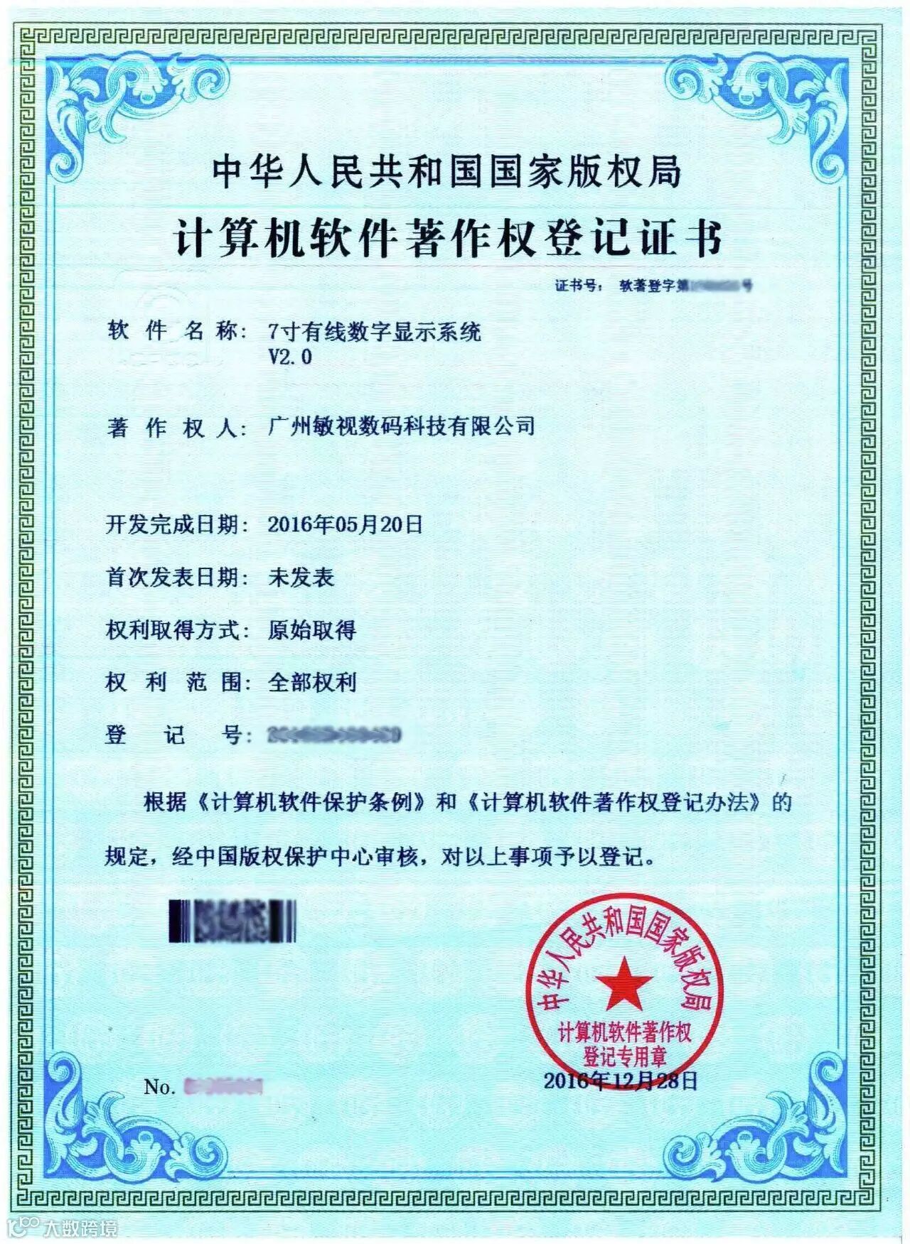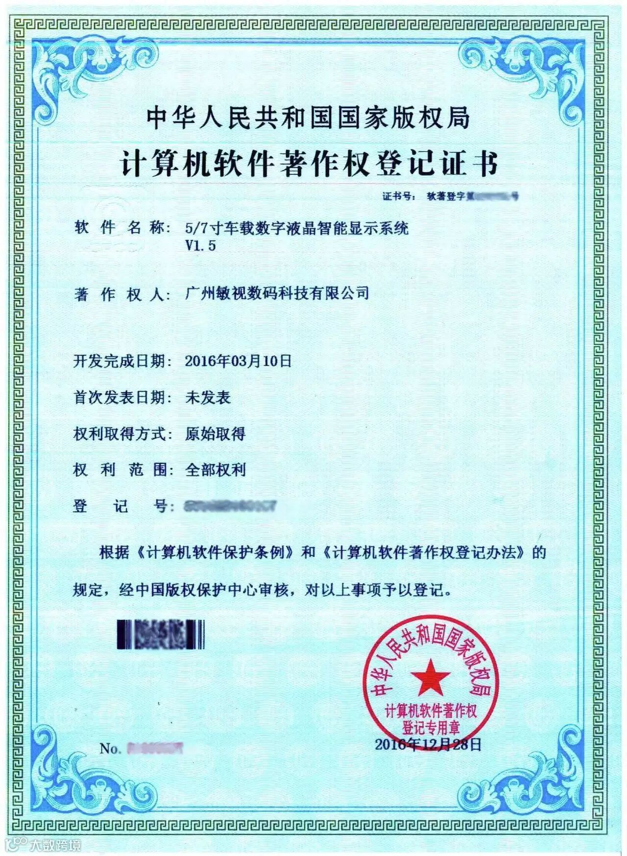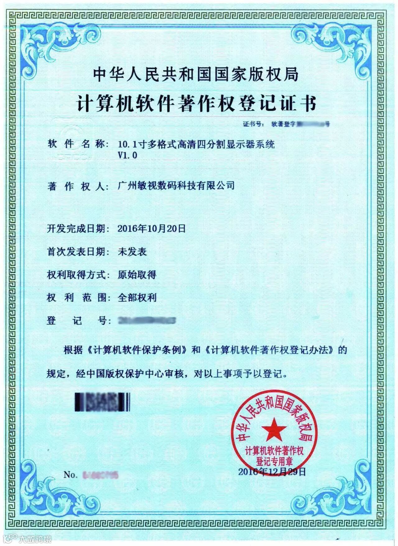 随着春节假期结束,新一轮的拼搏正式开始。正当我们怀着满满的斗志投身工作的时候,敏视获得了3项软件著作权证书。这3份证书,是2016年研发中心同事们努力专研的结果,它们分别是: