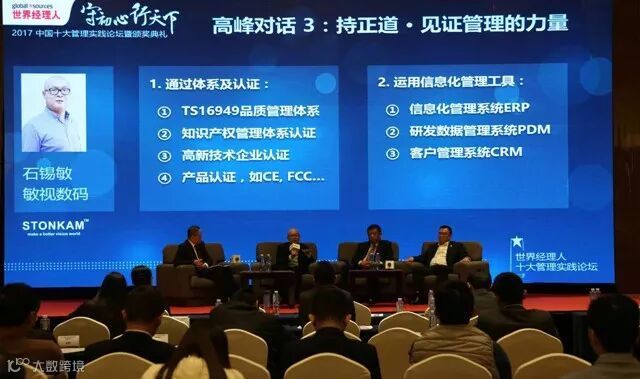颁奖仪式过后,本次论坛还开展了3场高峰对话,石总与资深管理专家及学者、成功企业家、及百余位管理精英和主流媒体一起畅谈管理给企业带来的变化,分享经验,展望中国智造。在此次论坛的“持正道,见证管理的力量”高峰对话环节中,石总也做了精彩的解读和分享。
