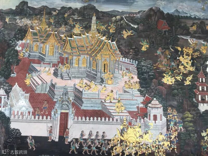 ▲大皇宫内汇集了泰国建筑、绘画、雕刻和装潢艺术的精粹,这是其中一幅画作