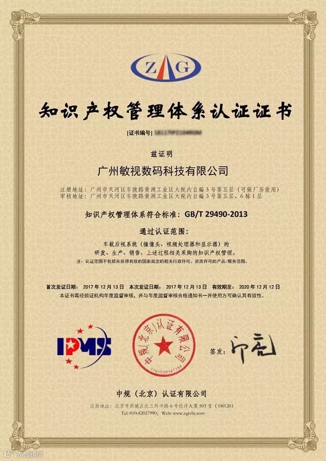 2017年11月27日至28日,中规(北京)认证公司知识产权管理审核组严格按照GB/ T29490-2013相关标准及法律法规要求,通过文件审核、现场审核、随机抽查,沟通交流等方式对STONKAM®进行了一系列的严格评估审核。于12月13日,STONKAM®以完整规范的知识产权管理体系顺利通过了中规(北京)认证公司的评估审核,成功取得了国家《知识产权管理体系认证证书》,这意味着STONKAM®在知识产权领域获得重要认可,标志着STONKAM®将在知识产权管理、创造、保护、运用等方面将迈上更高的台阶。