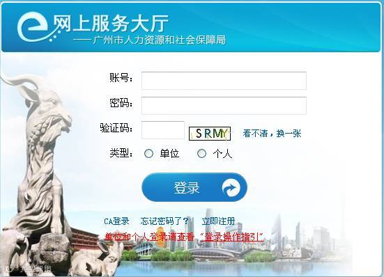 用户打开浏览器,输入广州市人力资源与社会保障局:(http://www.hrssgz.gov.cn/),登陆界面,点击个人社会保险查询,进入以下界面: