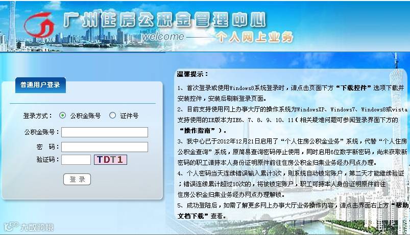 打开浏览器,输入广州住房公积金管理中心,点击进去个人住房公积金业务,进入以下界面,见图