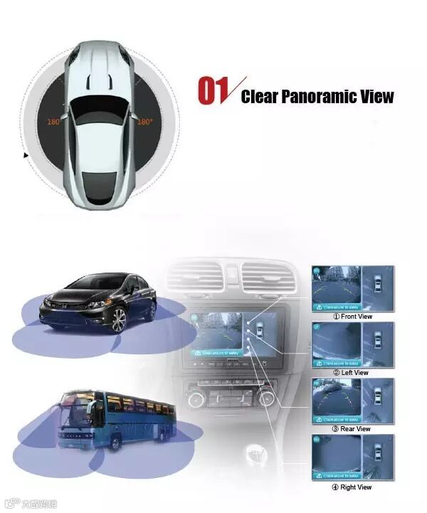 如果您还停留在“看得见”的单画面行车系统,那您就OUT了,敏视的360度全景摄像头行车系统早已实现了从“看得见”到“看得清”的全方位图的飞跃,360度全景环视,车身周边景象清晰可见,随时随地帮助您了解车辆周边视线盲区。