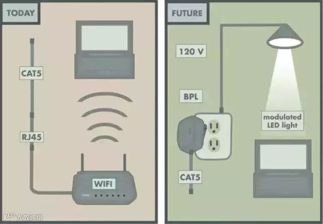 据中国工程院院士邬江兴介绍,目前全球约有 440 亿盏灯具构成的照明网络,数百亿的 LED 照明设备与其他设备融合将构筑一个巨大的可见光通信网。试想一下这种场景:未来,每盏灯都可以当做一个高速网络热点,人们在路灯下就能下载电影,在高铁上也能高速上网……