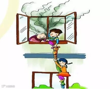 如果是被困在三层以上的位置,可以将室内的被子、被单等软物抛到楼底,再从窗口跳到软物上逃生。或者也可以把床单、窗帘、地毯等结成绳子,进行滑绳自救。
