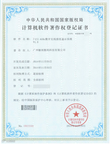 广州敏视一直以来便以技术创新、自主研发走在行业前沿。公司从创业伊始就十分重视知识产权保护,每年都申请并且顺利获批多项新型专利和软件著作权,今日再次传来捷报,敏视具有自主知识产权的软件产品荣获国家版权局颁发的软件著作权登记证书。