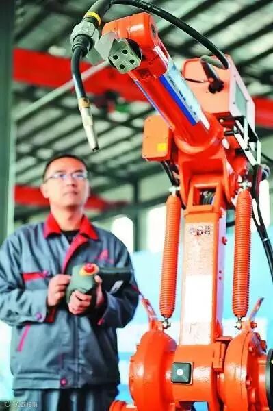 河北邢台经济开发区有一家为客户量身定制工业机器人的机电科技公司,近年来创新推出多种自动化“焊接机器人”,在10多个省区打开了销路。图为3月23日,公司技术人员测试“焊接机器人”。