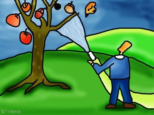 果农问专家:“为什么会出现这种现象?”专家告诉他,附近种的都是旧品种果子,而唯有他的是改良品种,开花结果时经蜜蜂、蝴蝶和风的传播,他的品种就变成杂交的了,果子的质量当然就会变差。果农问:“那怎么办呢?”“把你的品种分享给大家共同来种就可以了。”专家说道。下一年,大家都收获了好果子。