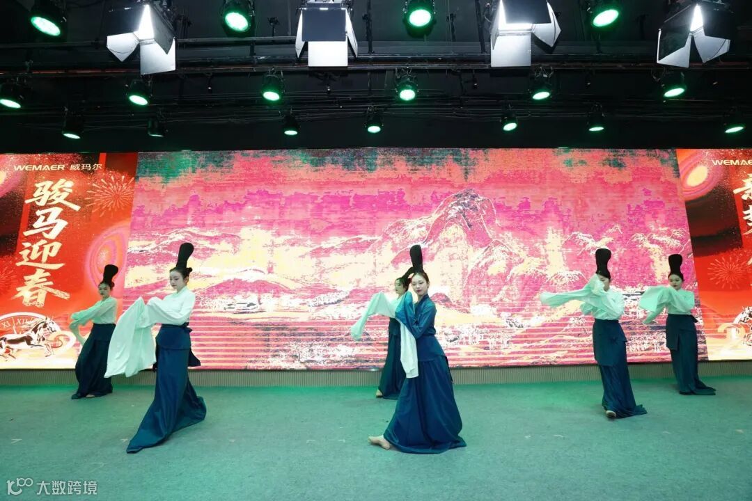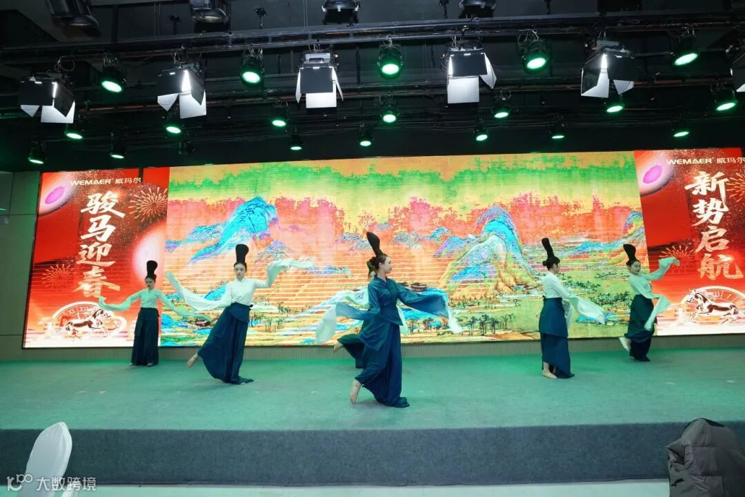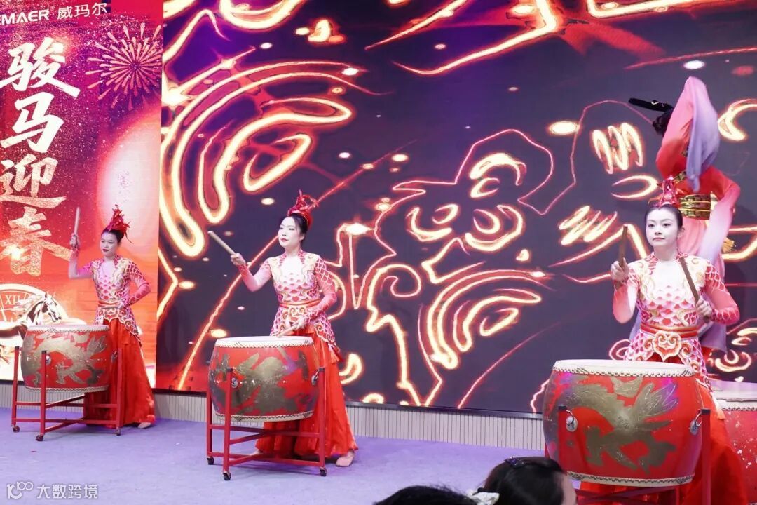 年会正式开始,一场《鼓上舞》以铿锵的鼓点、飒爽的舞姿瞬间点燃全场。六位舞者用充满力量与节奏的表演,象征着威玛尔人在过去一年中坚定向前的步伐,也为整场晚会奠定了热情奔放、奋进不止的基调。