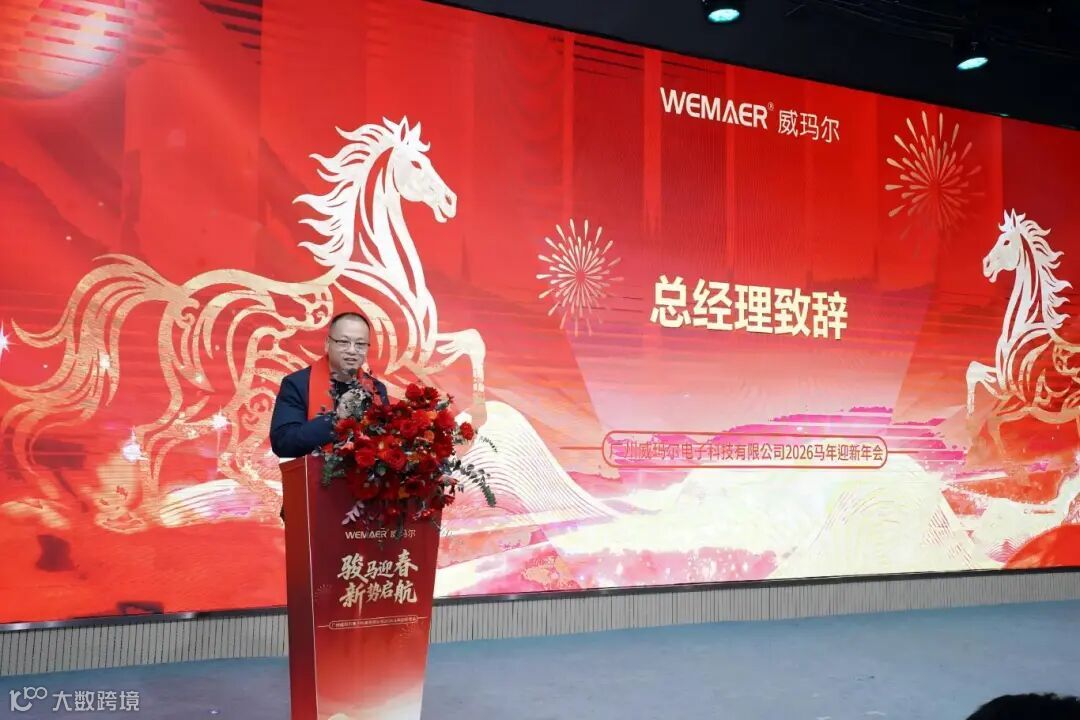 2026年1月23日,广州威玛尔电子科技有限公司“骏马迎春,新势启航”马年迎新年会在欢腾热烈的氛围中圆满举行。全体员工与合作伙伴及各界嘉宾、友人齐聚一堂,共同回首奋斗足迹,展望崭新征程。