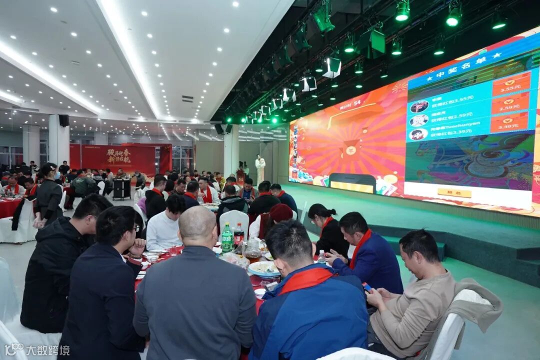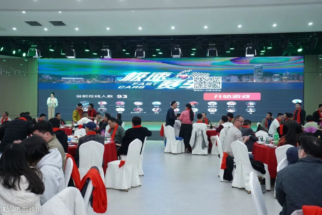年会特别设计了赛马、听歌识曲、赛车、红包雨等多轮手机扫码互动游戏。员工们积极参与,现场摇手机比拼速度,争相抢答歌曲,大屏幕实时战况紧张有趣。游戏不仅带来了丰厚礼品,更增进了同事间的互动与情谊,笑声、欢呼声此起彼伏。