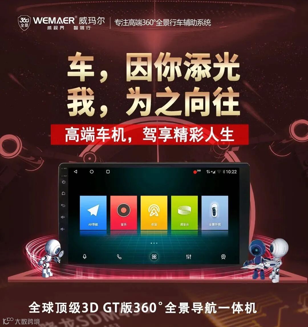 威玛尔GT版360°全景导航一体机,一款让人一见倾心,体验之后愈加喜欢的全能型车机,凭借其运行快、功能全、配置高、画质清等特点,在高端车机中独树一帜。【高通骁龙八核处理器、高通AdrenoTM 506 GPU、4G+64G运行内存及存储空间、正版授权DTS 5.1环绕音效、ST TDA7851功放芯片、2K无光宽动态摄像头、高清3D全景影像、AR实景导航(含ADAS行车辅助)、48段真实EQ调节、20种预设音效、智能语音声控+屏幕触控、4G全网通+WIFI上网、四路高清行车记录、停车监控、蓝牙电话、专业级收音机……】沿着精品路线,威玛尔GT版360°全景导航一体机持续优化升级,手机远程监控功能全新上线,车主可以通过手机来守护爱车。