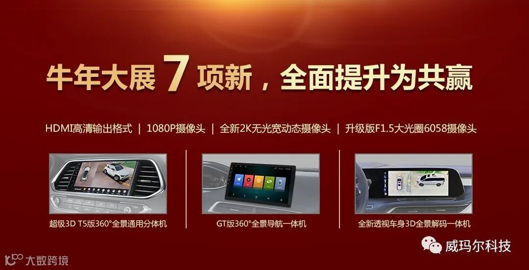 威玛尔导航一体机高端新品:GT版360°全景导航一体机,吸引了现场众多观众的目光。这款全功能车机采用高通骁龙八核2.4GHz处理器,4G+64G内存 ,安卓全新车机版操作系统,正版授权DTS HiFi级数字音效, 48段真实EQ调节, 智能3D全景行车辅助系统,高配版AR实景导航,2K无光宽动态摄像头……多项功能配置属行业顶配。