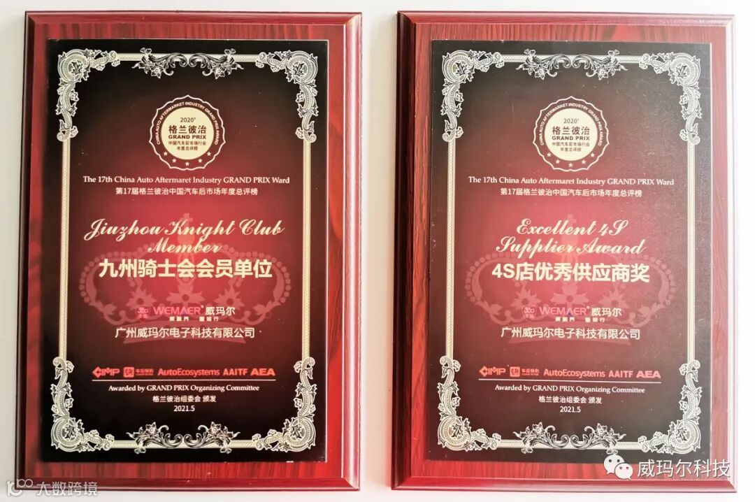 威玛尔荣获4S店优秀供应商奖