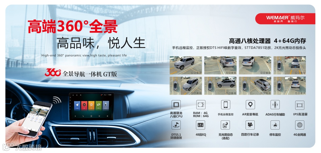 威玛尔GT版360°全景导航一体,采用高通八核处理器,配置4+64G运行内存和存储空间,以其运行快、配置高、功能全、画质清等特点,深得广大车主的青睐。爱车装配上它,既增加了车辆的主动安全配置,又融入了更多前沿科技,带来愉悦而高品位的车生活。