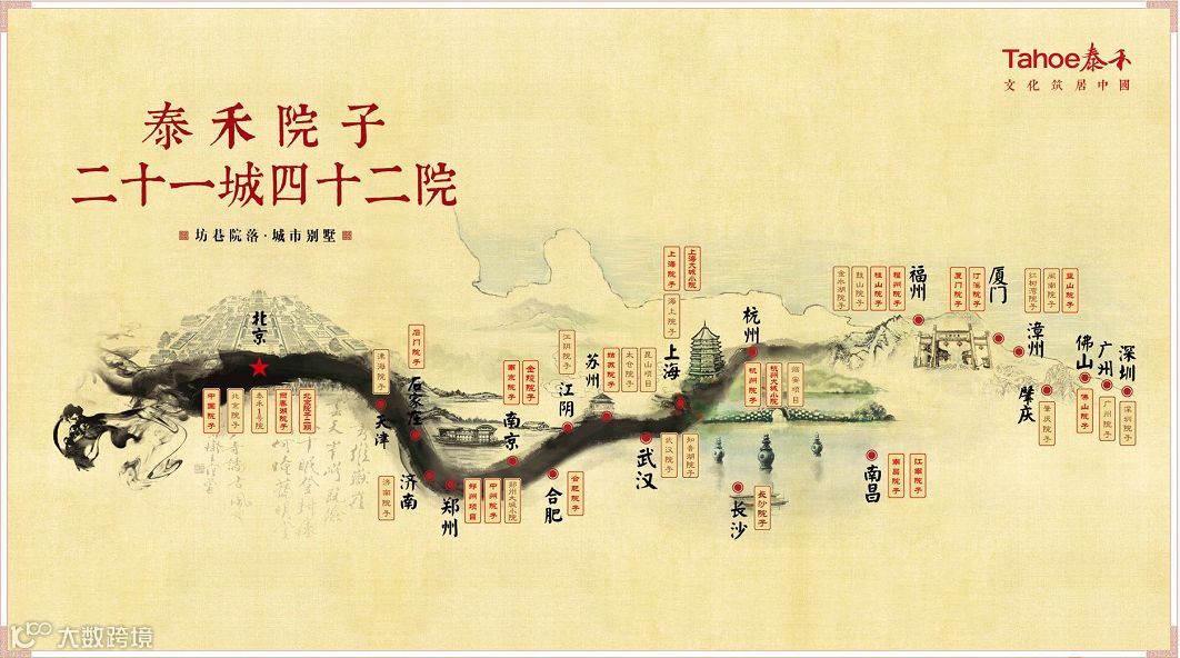 秉持“深耕核心一线,全面布局二线”的布局战略,坚持“为城市创造作品,为时代奉献精品”,目前泰禾主要布局在以一二线核心城市为主的32座城市,围绕以北京为中心的“京津冀”地区、以上海为中心的长三角地区、以广深为中心的珠三角地区以及以福厦为中心的海西经济区、以武汉为中心的中部地区进行市场开拓,高度契合“京津冀协同发展”、“一带一路”、“自贸区”、“粤港澳大湾区”等国家战略。