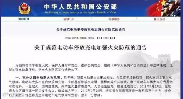 不少人家里都有电动车,不少人使用完都习惯推到家里或者楼梯间存放、充电。实际上这是非常危险的。2017年12月31日,公安部紧急下发《关于规范电动车停放充电加强火灾防范的通告》,要求规范电动车停放充电行为,严厉查处违规停放充电行为。
