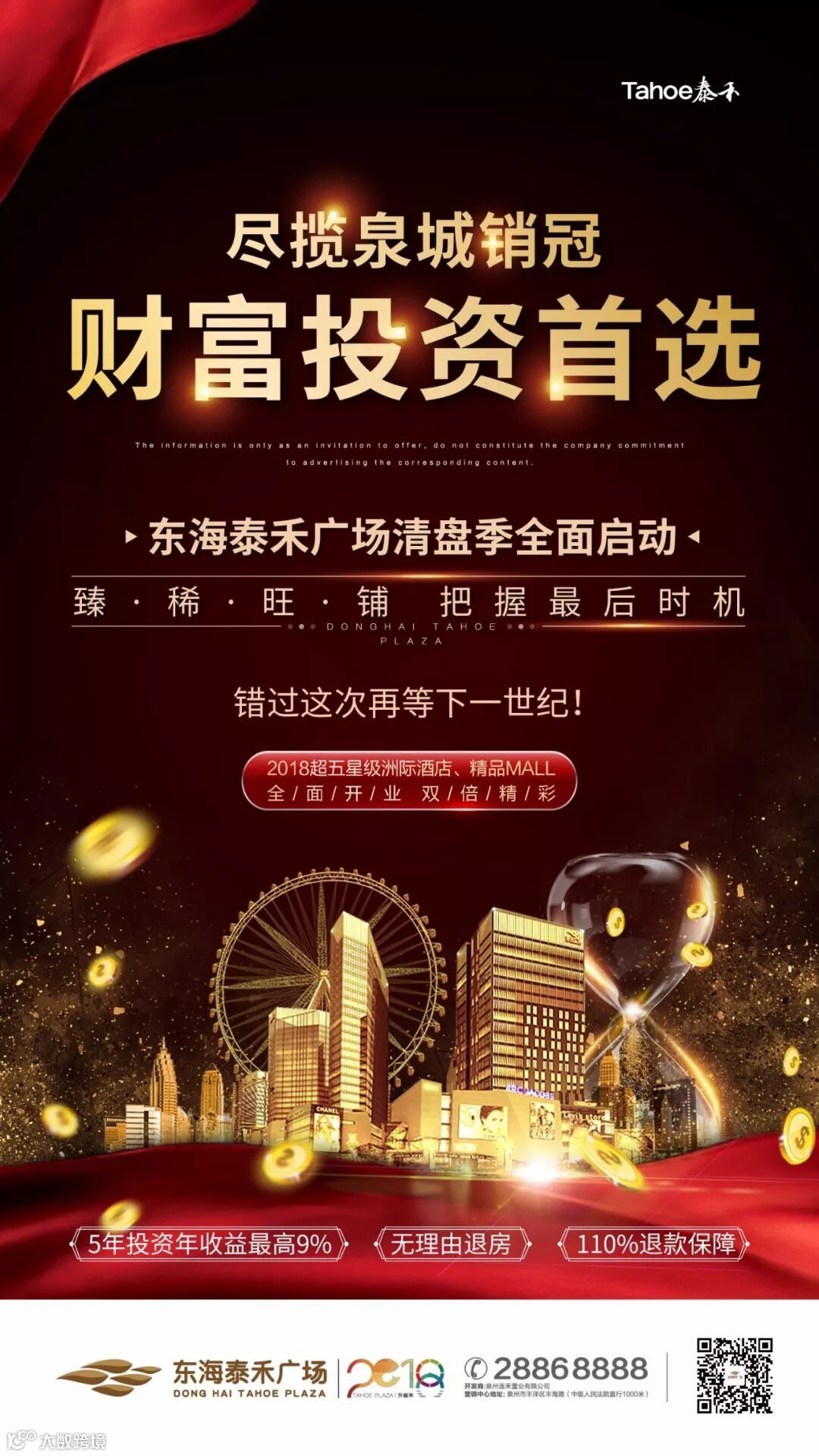 东海泰禾广场百亿之上,三大中心环绕的核心铺王,坐拥万千人潮!星巴克、肯德基、中国黄金、黄金码头等一线品牌均已抢先入驻并开业。100%带品牌现铺发售,泉州城市中心最具投资潜力的理财产品,抢到赚到!