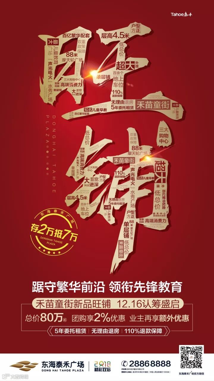 这一次,禾苗童街将开启属于东海泰禾广场的又一番自我突破,把2017年的强大王者势头,延续至2018年。明日新品【禾苗童街】贺岁重磅钜惠,年终压轴登场!12席稀缺钜惠铺位,开抢倒计时!