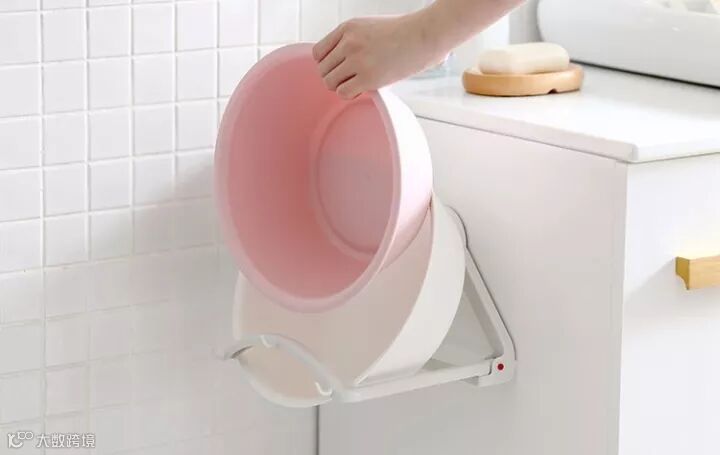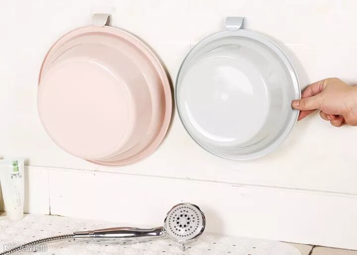 如果地上空间不多的话,还可以利用墙面空间,马爸爸网站上有很多款式的脸盆挂钩,往墙上粘或者吸盘。而且很多挂钩也可以同时收纳N个脸盆,也是可以盆套盆。墙上或者浴室柜的侧面等,哪里有空,或者哪里不碍眼就挂哪里。