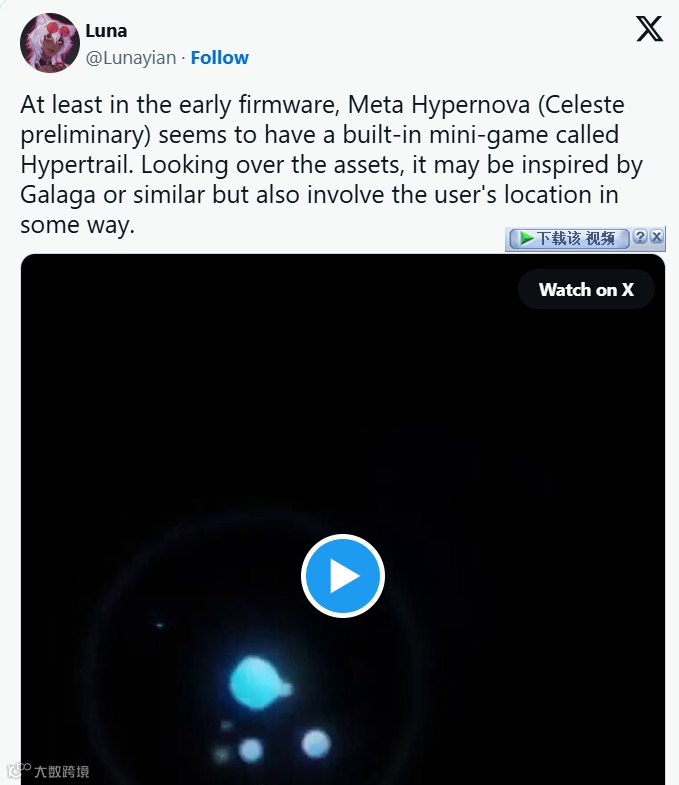 这位爆料人最后透露了一条消息:Hypernova(或 Celeste)眼镜可能会内置一款迷你游戏。Luna 声称这款眼镜可能会内置一款名为“Hypertrail”的游戏,这款游戏似乎受到了复古游戏 Galaga 的启发,甚至可能“以某种方式与用户的位置信息相关”。