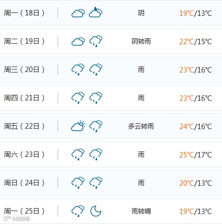 泉州的天气舞台阴雨当道!