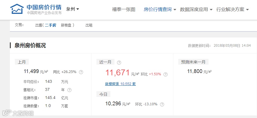 而据中国房价行情网显示,泉州二手房4月平均单价为11,499元/㎡