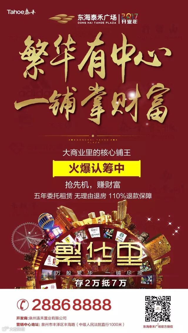 泉州东海泰禾广场泰禾·繁华里,首期仅推22席臻稀铺源,把握开业前最后财富升值机会,你怎能错过?