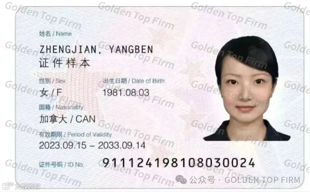 永久居留证样式: