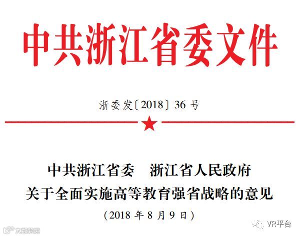 · 浙江省委省政府正式发布《关于全面实施高等教育强省战略的意见》。其中,该战略意见中明确指出要推进教育和管理数字化,探索建设基于增强现实、虚拟现实、混合现实技术的沉浸式学习环境。