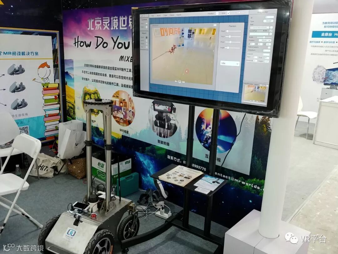 在现场VR网小编体验了其VR阅读、VR冥想等应用:在VR阅读中,VR网小编身处一个温馨的卧室,而面前则摆放着阅读物,通过手柄进行翻页,耳机中则是故事内容旁白,相信没有小朋友会拒绝这样的VR阅读物。而在VR冥想中,VR网小编则被传送至深邃的宇宙、空旷的冰川、茂密的森林等场景,耳中响起空灵的音乐以及旁白,沉浸感十足。另外,摆在一旁的程控自动采集车也非常吸睛。