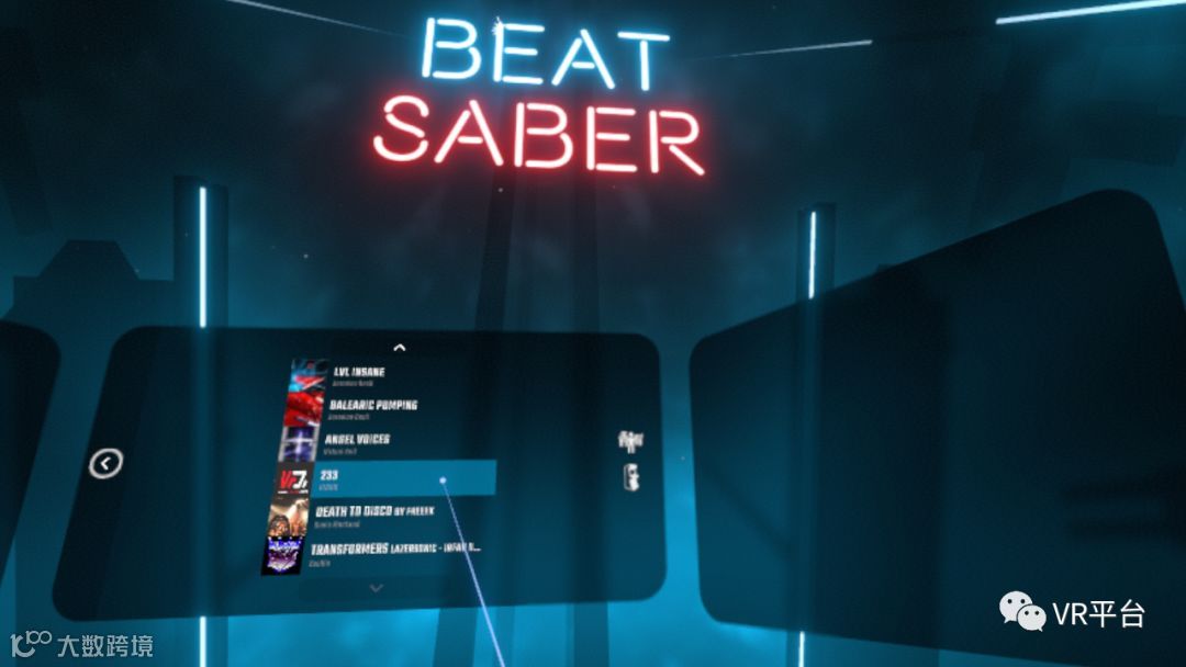 最终,如上图所示在游戏选择曲目界面中,VR网小编发现了从beatsaver上下载的“Transformers”以及自行制作的“233”。