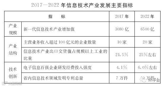 1.打造全省经济发展的新增长极。到2022年,全省信息技术产业综合竞争力全面提升,产业规模保持全国前三,占全省工业比重显著提升,达到15%以上。产业质量明显提高,初步建成竞争力强、特色优势突出的新一代信息技术产业体系,重点培育3-5个千亿级企业、8-10个千亿级特色产业集群,逐步成长为我省现代化经济体系新支柱和拉动全省经济增长的新引擎。