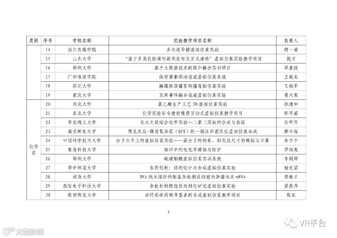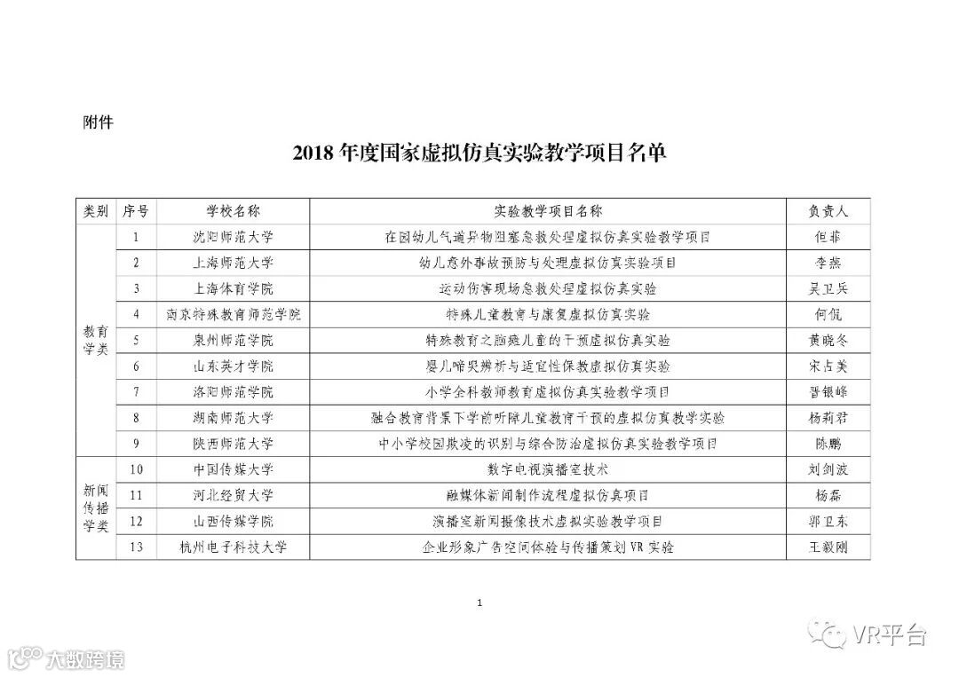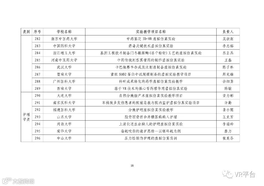 近日,教育部高等教育司发布了《2018 年度国家虚拟仿真实验教学项目认定结果的通知》,共有296个项目入选,来自全国296所高校。这也是继2018年6月教育部公布首批105个国家级虚拟现实仿真实验教学项目后,教育部再次认定这一重量级教学项目。