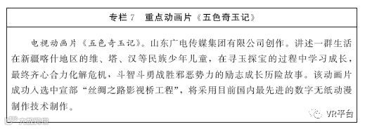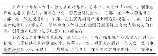 日前,山东省人民政府正式印发《山东省影视产业发展规划(2018—2022年)》。VR网了解到,该发展规划中提出要推动融合发展。加强创业创新孵化,加大对传统影视企业与互联网企业跨界融合的扶持力度。与通信运营商、信息服务企业开展深度合作,利用互联网、移动终端等载体,加大影视产品推广力度。积极推进三网融合,大力发展高清电视、移动多媒体广播电视、手机电视、回看点播、电视院线、虚拟现实(VR)、智能家居、智慧城市等新兴业务,积极打造“智慧广电”,催生新的经济增长点。