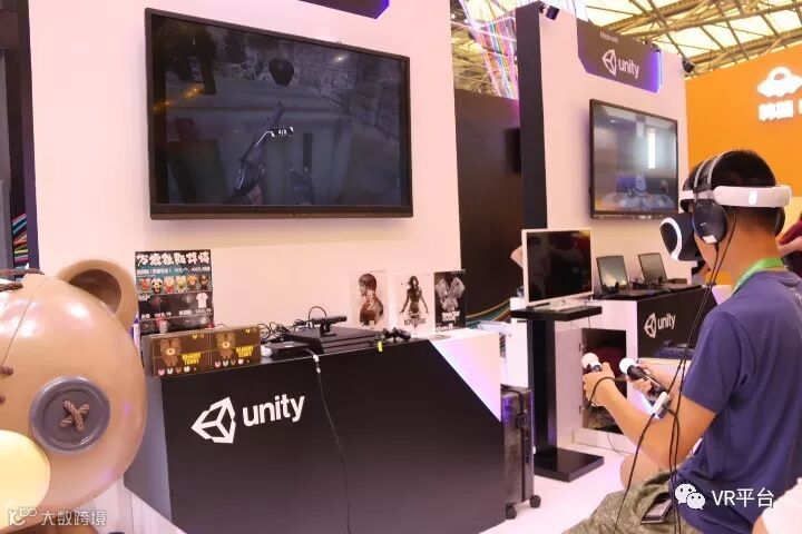 Unity集合了多家VR厂商的内容及设备,包括PSVR上的三款游戏作品:《除夕》、《牧场星球》、《18层之海上火车》;联想Mirage AR头显;以及诺伊腾的Hi5动捕手套。
