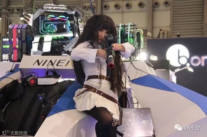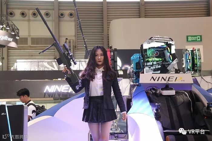 今日,广州玖的在现场重磅发布首款超跨端VR吃鸡内容—黑鲨行动,详细情况请戳。游戏中,VR玩家会操控的机甲,强势登陆吃鸡战场,而为玖的站台的小姐姐亦如该游戏一般,霸道强势。
