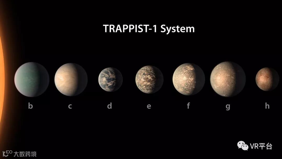 NASA利用利用他们所掌握的的有关TRAPPIST-1星系的所有信息,创建了一个可视视图,而你只需要带上VR头显,就可以站在这颗地外星系的地标了,在那里你可以看到天空中所有相邻的行星。