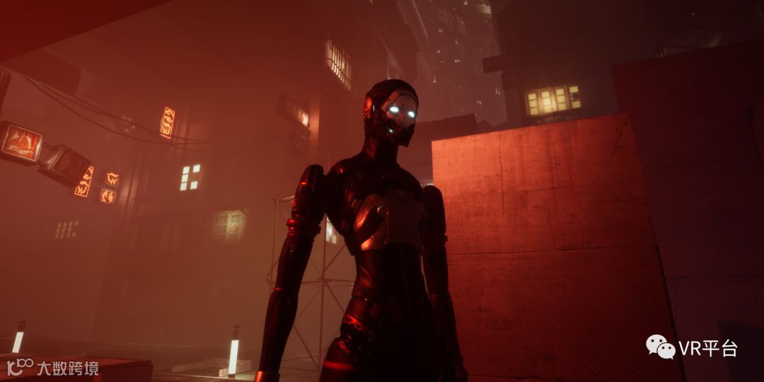 在我们穿戴设备的同时,钱清泉向我们介绍了游戏的背景:在不远的未来,出现了AI仿生人,他们的地位低于人类,为了变成人类,就要不断收集DNA,收集的足够多就能让自己变成人类。在实际的线下店面运营中,工作人员会在进入游戏之前通过视频向玩家介绍游戏背景和玩法。