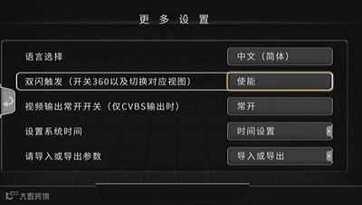 支持选择是否选择双闪触发360°全景,提升操控方便性。此外,按遥控器旋钮打开 360 时,不再自动退出,可长按遥控器或双击双闪(双闪使能时)退出。