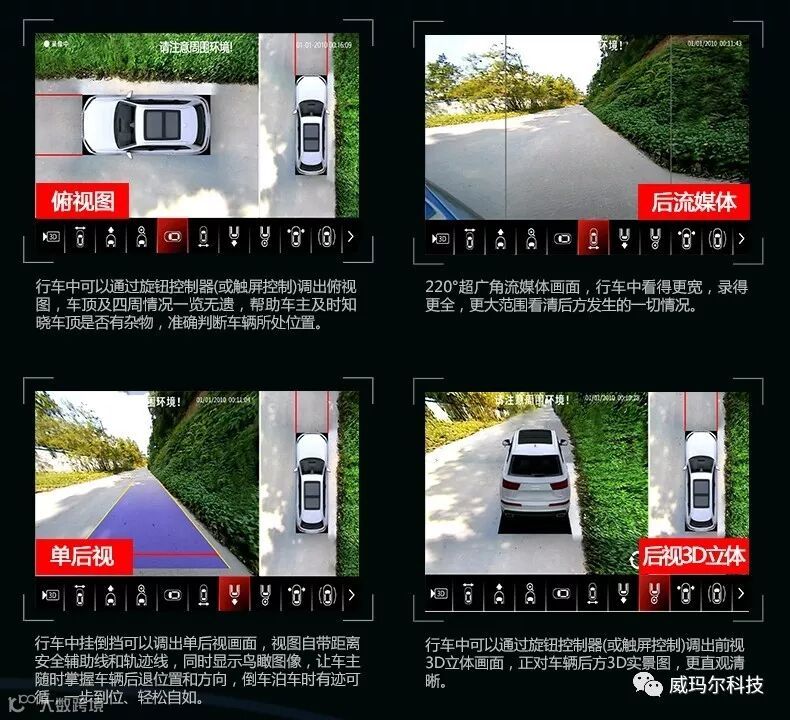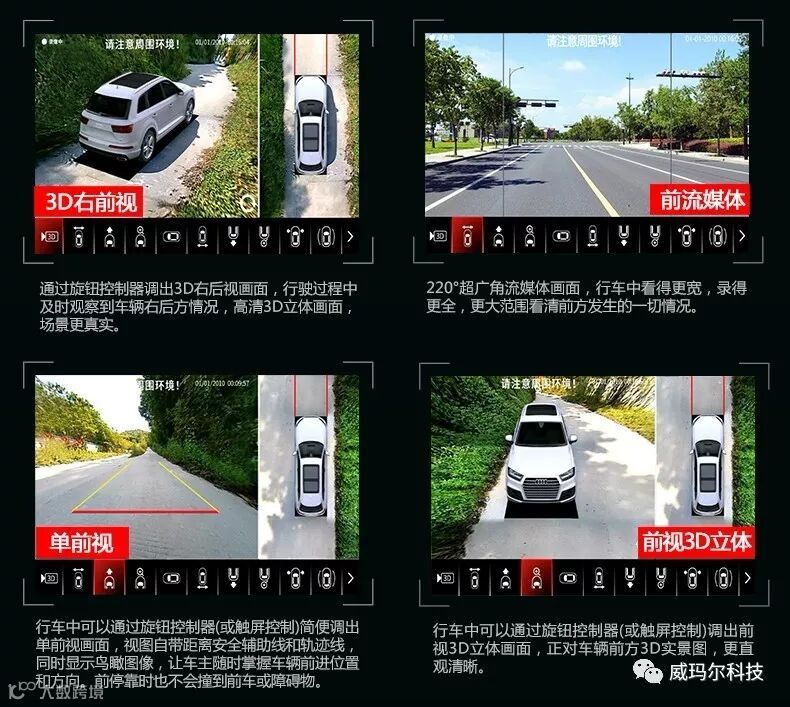 好产品总是那么引人关注。威玛尔全新3D Pro星耀版360°全景一经推出就吸引了业界及众多车主用户的眼球。首创3D AR技术、全新画面畸形处理技术、7层全玻璃1080P夜视镜头、超多实用视图画面、独家私模遥控器等等,诸多全新技术运用和突破让它瞬间成为行业标杆,带给车主全新360°行车辅助体验。大家都在探视着这位堪称同类产品中顶级明星的点点滴滴。下面就由小威给大家揭开威玛尔全新3D Pro星耀版360°全景神秘面纱。