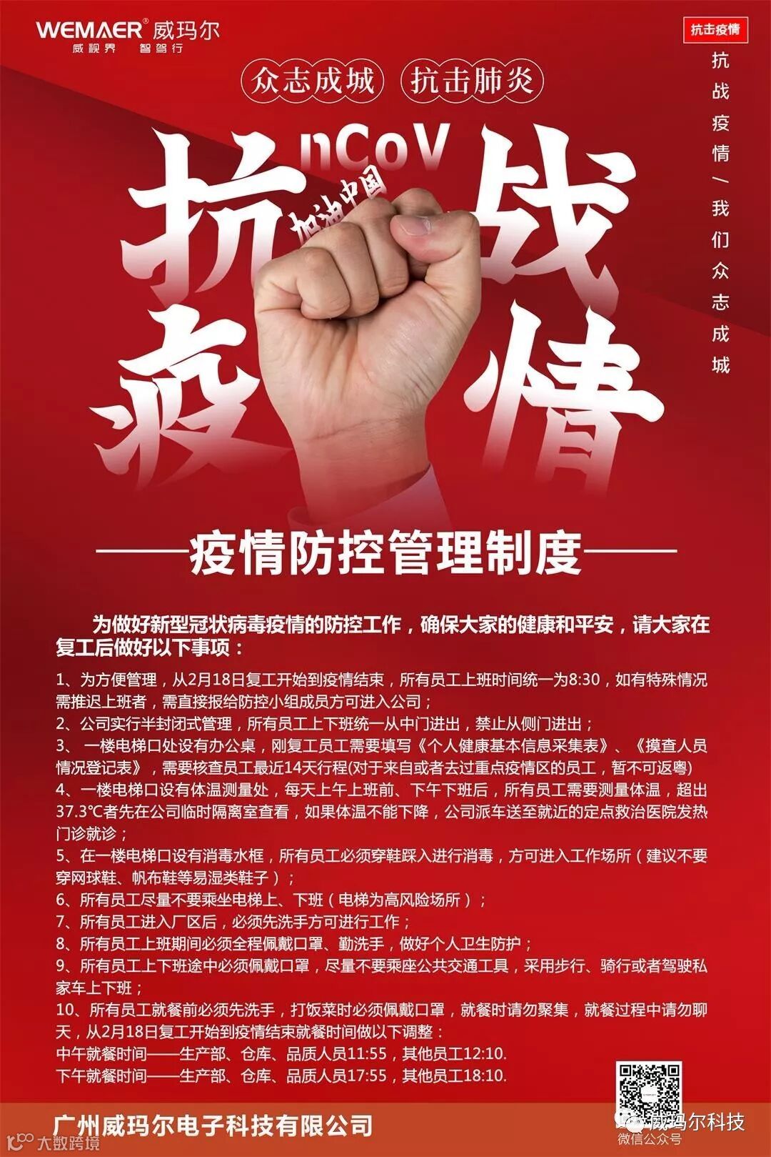 防控措施,重在执行。威玛尔全体员工责任在心,工作到位,与全国人民一起努力打赢这场疫情防控阻击战。