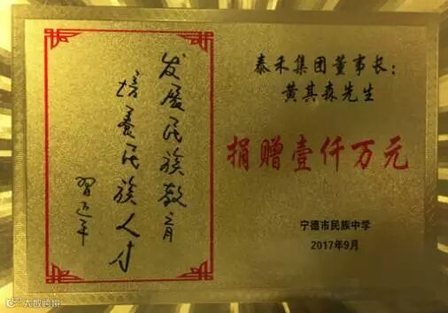 泰禾捐资1000万帮扶宁德市民族中学教育事业发展