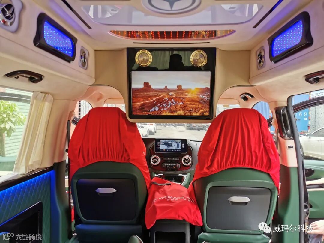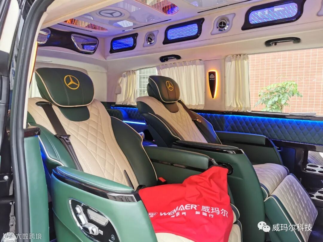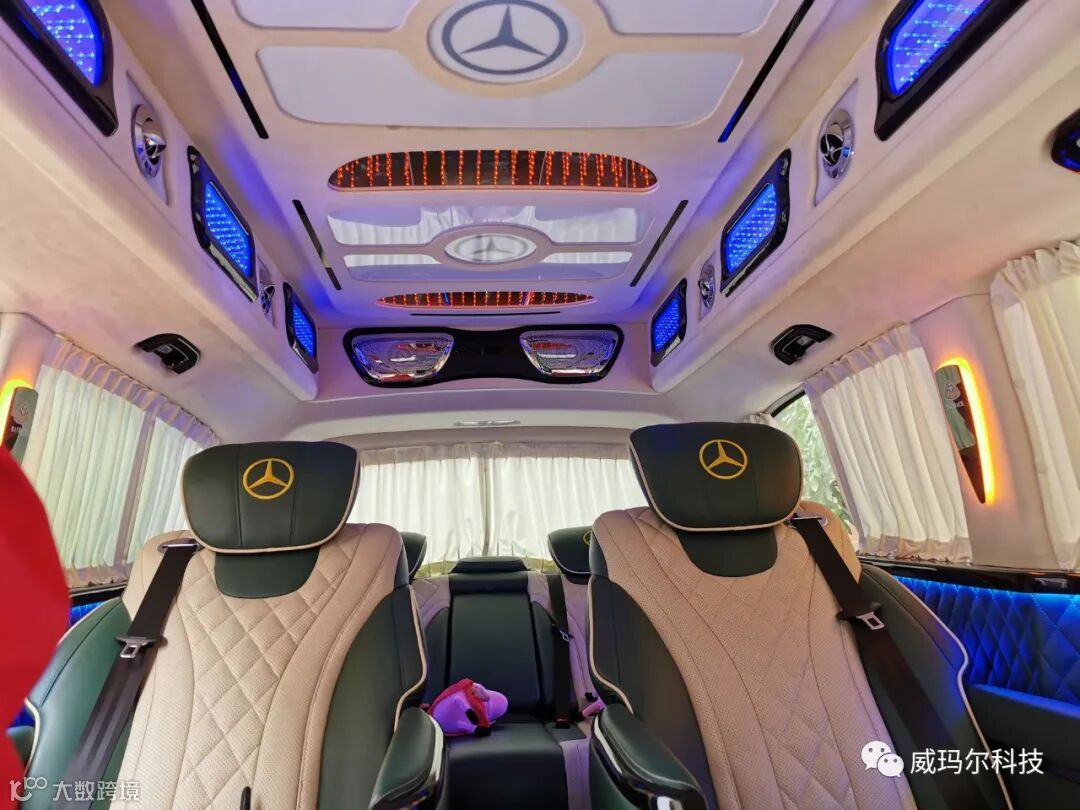 车主这次给威霆的改装升级是全方位的,所有的配套改装件都是高档的乃至业界顶级的,尽享大气外观及豪华内饰。迈巴赫大包围、18寸大轮毂、改装高顶、电动中门尾门、电动航空座椅、高级印花地板、后排可调沙发座椅、后排触摸屏、吊顶大屏影音系统、车内顶灯/氛围灯、侧储箱、中央扶手+冰箱、中控大屏……一个不少。威霆升级完成,接送客户更显档次,陪伴家人出行也更加舒适和自在。