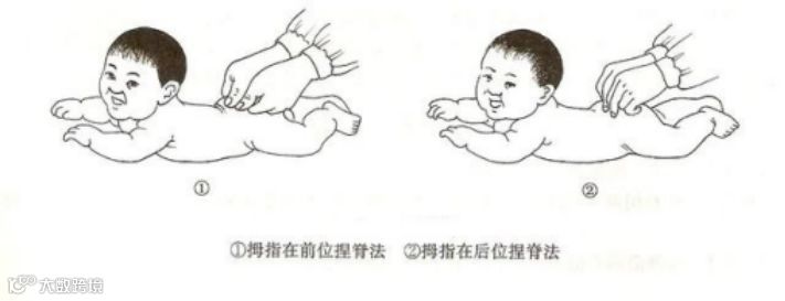 操作:背脊正中,督脉两侧的大椎至尾骨末端处。拇指在后,食、中指在前或者拇指在前,食、中指在后,三指同时用力拿捏皮肤,双手交替捻动,缓缓前移。从尾骨端一直捏到颈部大椎穴,每捻动3次,便轻轻用力上提1次,捏3-5遍,至皮肤红润微充血而止。捏脊具有健脾理肺, 提高免疫力、减少呼吸系统感染的作用。摩腹法和捏脊法配合使用会提高孩子免疫力。